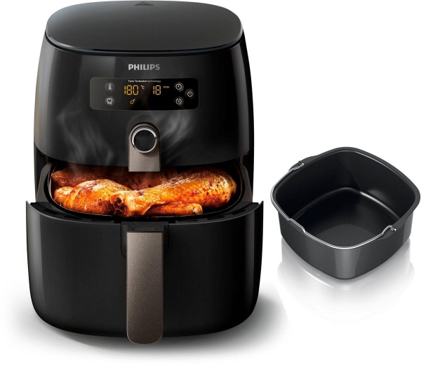 Công nghệ không khí nóng Twin Turbostar: Kết hợp giữa sức nóng mạnh mẽ và động cơ với công nghệ không khí nóng Twin Turbostar làm cho không khí nóng quay xung quanh toàn bộ buồng nấu giống như một cơn lốc xoáy mạnh mẽ. Quá trình này loại bỏ nhiều chất béo từ thực phẩm và thu gom chất béo trong khay, nơi nó có thể được xử lý dễ dàng.